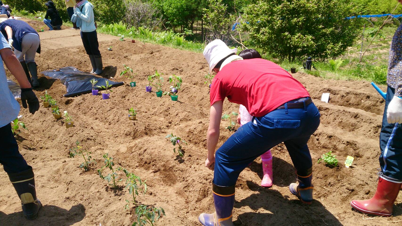 第二回親子農業体験教室 ネギの定植とじゃがいもの土寄せ。 個人区画では好きな野菜苗を植えました! とても暑い1日でした(^_^;)